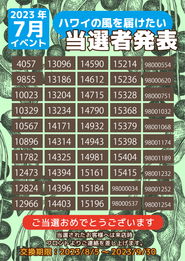 ご当選おめでとうございます!!